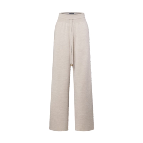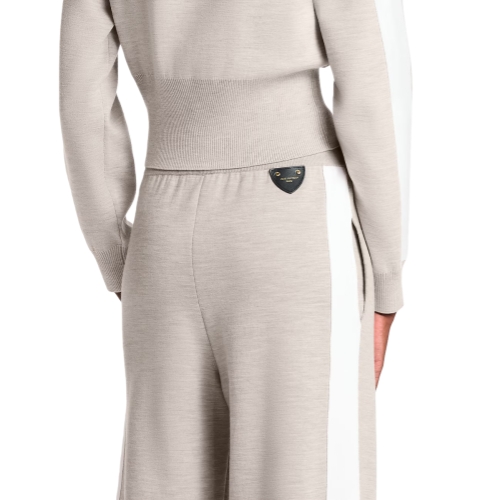 These jogging pants have elevated appeal in a fine wool-blend knit crafted in a wide-leg shape with a flattering wide waistband. The outer seams are highlighted with contrasting stripes for a classic sporty feel, while a leather Louis Vuitton Paris patch adds a refined signature to the back. Complete with two practical side pockets.