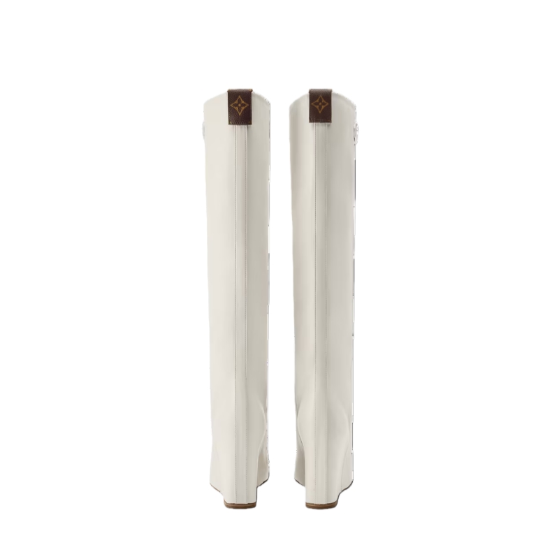 The Summer high boot is a vintage-inspired style which captures the disco vibes of the 1970s. It is crafted entirely from smooth calf leather, which also covers its high wedge heel, creating a sleek look. The tubular shaft ensures easy fitting, and is signed with a Louis Vuitton-embossed leather label and a back loop in Monogram canvas.