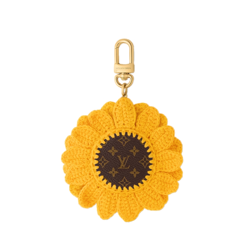 The eye-catching design of the Sunflower Crochet bag charm is a playful ode to the spirit of summer. Meticulously hand-crafted in pure cotton, it features crocheted petals around a Monogram canvas centerpiece for a subtle House signature. Easy to attach with its gold-toned metal snap hook, it adds a splash of bright, cheerful color to any bag.