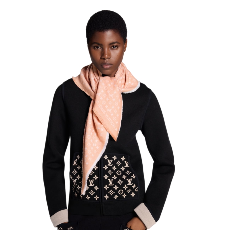 With its ultra-fashionable shape and classic signature design, this casual-chic triangle shawl lives up to its name: The Favorite. A refined mini-Monogram pattern is jacquard woven in opulent wool for an understated House touch. Easy to knot around the neck for an on-trend effect, this versatile shawl complements a variety of looks for all occasions.
