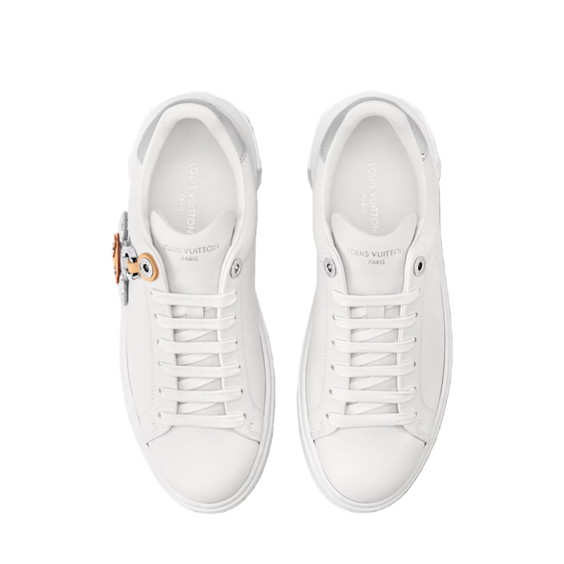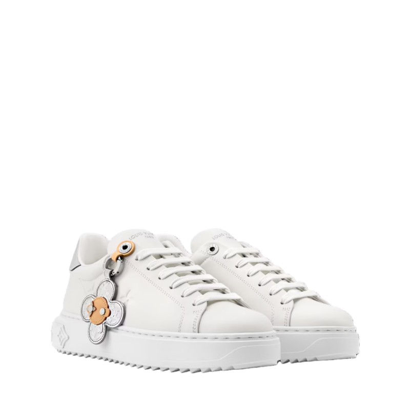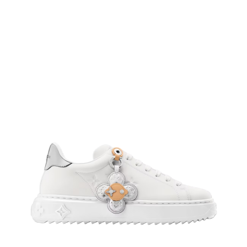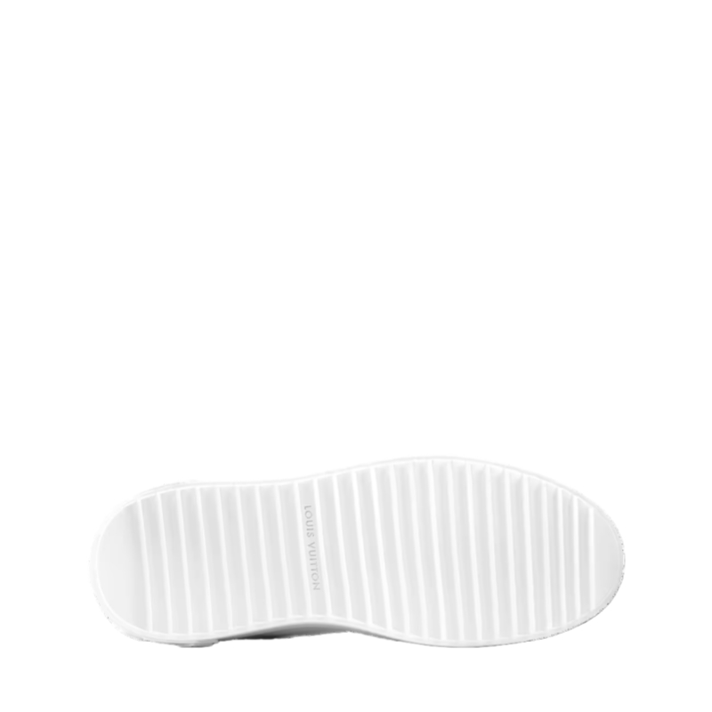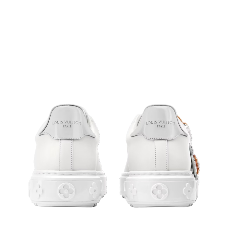 This richly detailed edition of the Time Out sneaker comes in smooth calf leather with trim in mirror-effect leather. The laces are embellished with a Vivienne tag in natural and mirror-effect leather embossed with the Monogram pattern. This model has the Louis Vuitton signature at the back and three Monogram Flowers on the lightweight EVA outsole.