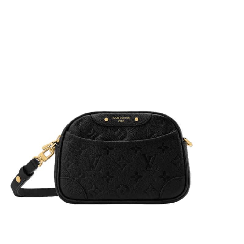 The Monogram Empreinte collection offers this Tiny Camera Bag in a timeless colorway. Crafted from cowhide leather, it is designed with gold-toned hardware and offers an adjustable strap for multiple ways to wear. This sleek handbag will complement both day and night looks, and fits everyday essentials. The front flat pocket is ideal for keeping a credit or travel card within easy reach.
