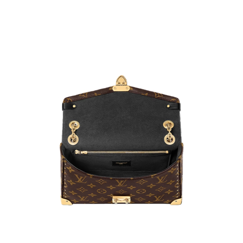 The Trunkie celebrates the House’s legacy, combining functionality with sophistication. It is crafted from Monogram canvas adorned with 38 gold-toned rivets, echoing vintage Louis Vuitton luggage. The contemporary design features metallic corners, as well as a signature S-lock and sliding chain to offer multiple carry options. The interior is sized to fit everyday essentials and includes a zipped pocket.