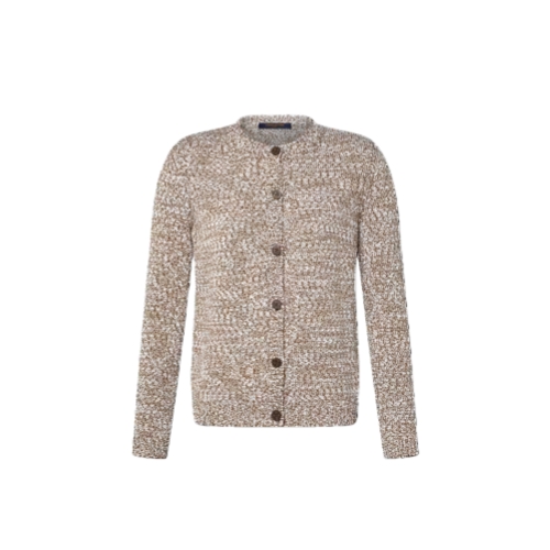This classic crew-neck cardigan is quietly elevated in this season’s elegant tweed-inspired knit, spun from soft, cozy cotton. Monogram canvas buttons add a subtle signature to the front fastening, while the nape of the neck is detailed with an embossed leather Louis Vuitton Paris tab for a refined finishing touch.