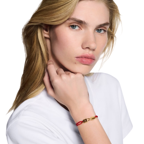 Featuring a fresh creative take on a symbolic House icon, the distinctive Twin Locked bracelet adds a subtle touch of flair to an everyday look. Its supple braided cord is secured by two gold-colored padlocks detailed with the famous LV Initials and a Monogram Flower. A timeless, elegant accessory that recalls the House’s trunk-making heritage.
