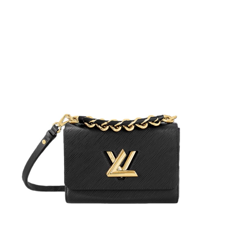 This glamourous Twist MM handbag is made from deep-dyed Epi grained leather and adorned with a detachable chunky gold-color chain, braided with leather. The braiding on the chain reflects Louis Vuitton’s superior leather craftsmanship. The chain is perfect for hand carry while a removable strap allows shoulder and cross-body carry.