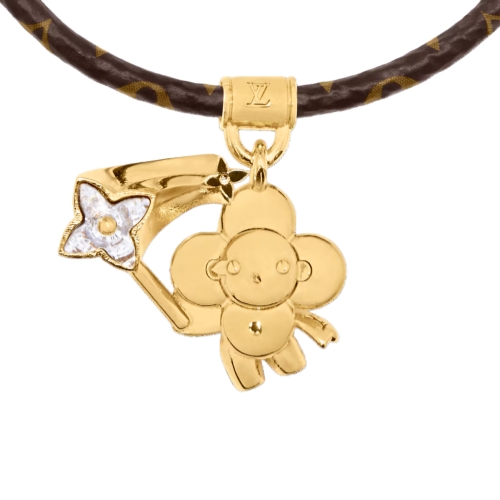 Louis Vuitton’s fun and fanciful mascot shows off her superpowers in the Vivienne Fairy Bracelet. Crafted in gold-tone metal on a Monogram canvas cord, she wields a crystal-studded magic wand in the shape of a Monogram Flower. With its fine materials and rich detailing, this precious accessory makes a marvelous gift for Vivienne lovers.