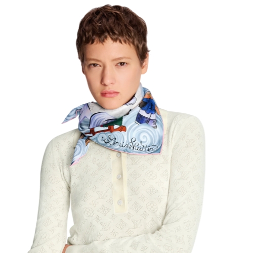 The finely detailed design of the Vivienne Winter Holiday square evokes the enchantment of snowy landscapes and the festive year-end season. Crafted in sumptuous silk, it features Vivienne and her friends enjoying winter fun: skiing, fetching a Christmas tree, riding a sleigh full of presents… A Monogram background adds a subtle House signature to this elegant, sophisticated accessory.
