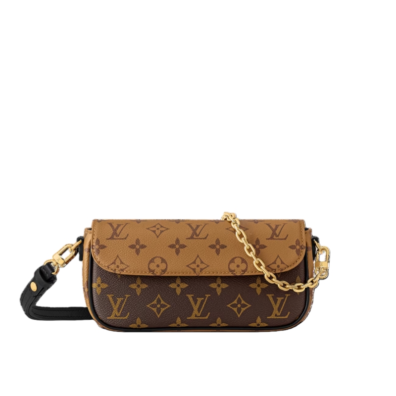 This edition of the Wallet On Chain Ivy showcases the House’s signature Monogram Reverse canvas, offering a directional take for the season. The elegant style is defined by a removable gold-toned chain that matches the iconic LV Initials. The organized interior reveals a flat pocket with three card slots, ideal for securing everyday essentials.