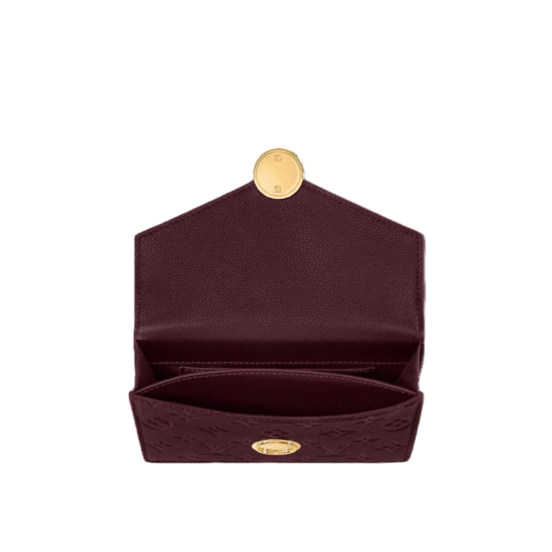 This elegant Wallet On Chain Rosy offers a timeless Burgundy colorway that complements any look it is paired with. Made from the House’s signature Monogram Empreinte leather, it is accented with a gold-toned LV Circle and a sleek chain for shoulder carry. The chic design is sized to fit everyday essentials, and includes three slots to keep credit cards secure.