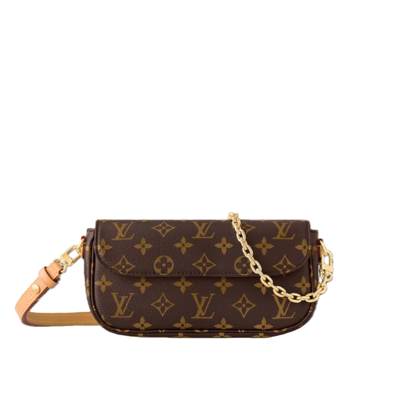 Inspired by the Sac Recoleta handbag from the 2000’s, the on-trend Wallet On Chain Ivy bag is fashioned from Monogram canvas. The removable gold-color chain allows short-shoulder carry while the adjustable and detachable strap, in natural leather, enables cross-body and long-shoulder carry. Three card slots and a zipped inside pocket make it perfect for everyday essentials.